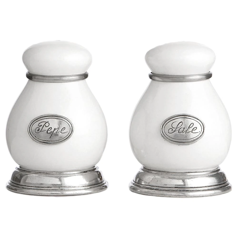 • Lastra Modern Classic White Stoneware Salt and Pepper Shakers|Kathy Kuo Home