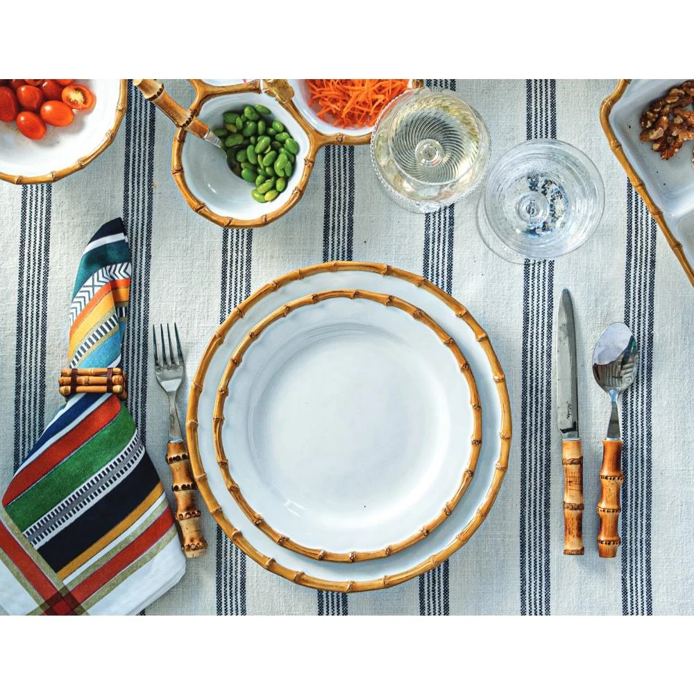 • Juliska Bamboo Coastal Beach White Ceramic 16 Piece Place Setting|Kathy Kuo Home