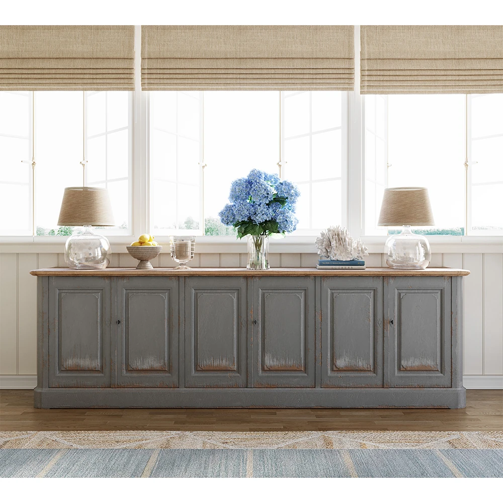 • 17th Century French Country Navy Blue Oak Dresser|Kathy Kuo Home