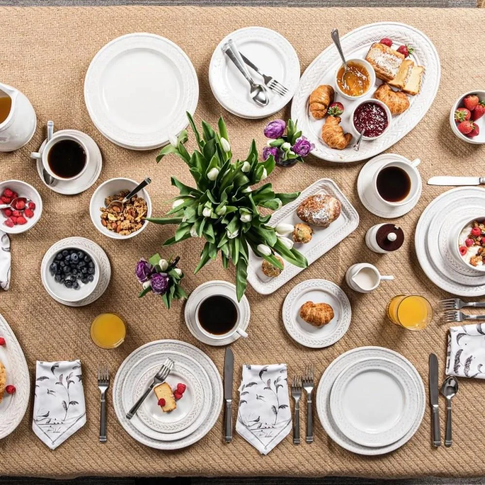• Juliska Le Panier French Country Whitewash Ceramic 16 Piece Place Setting|Kathy Kuo Home