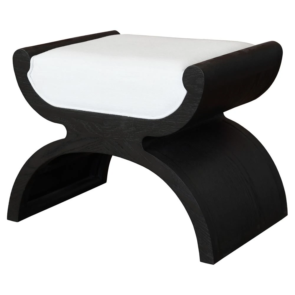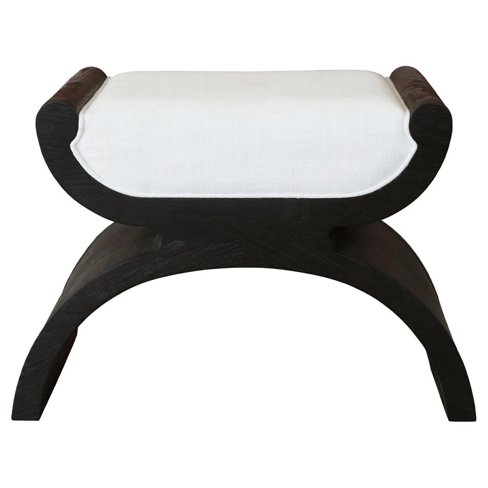 Worlds Away Janna Rustic Lodge Black Oak White Upholstered Seat Stool