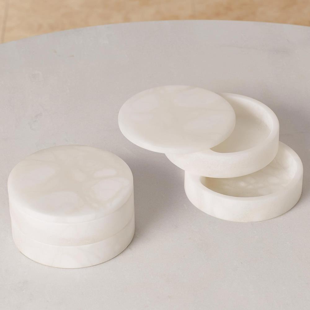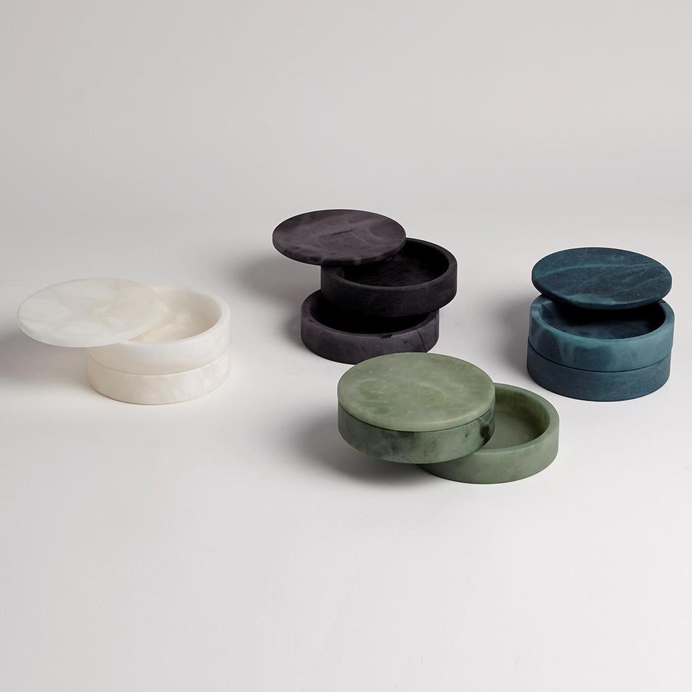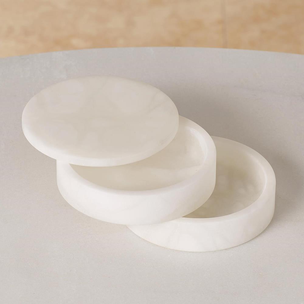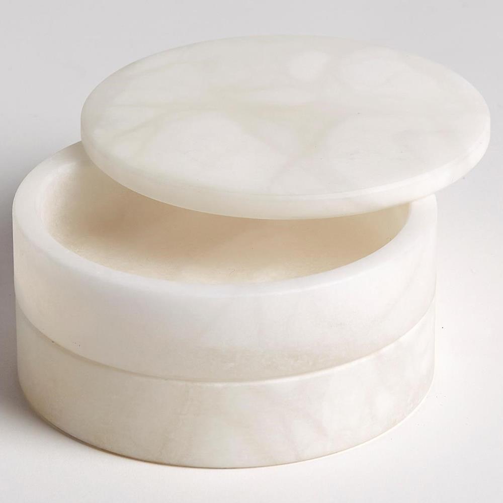 Suri Modern Natural White Alabaster Round Swivel Decorative Box