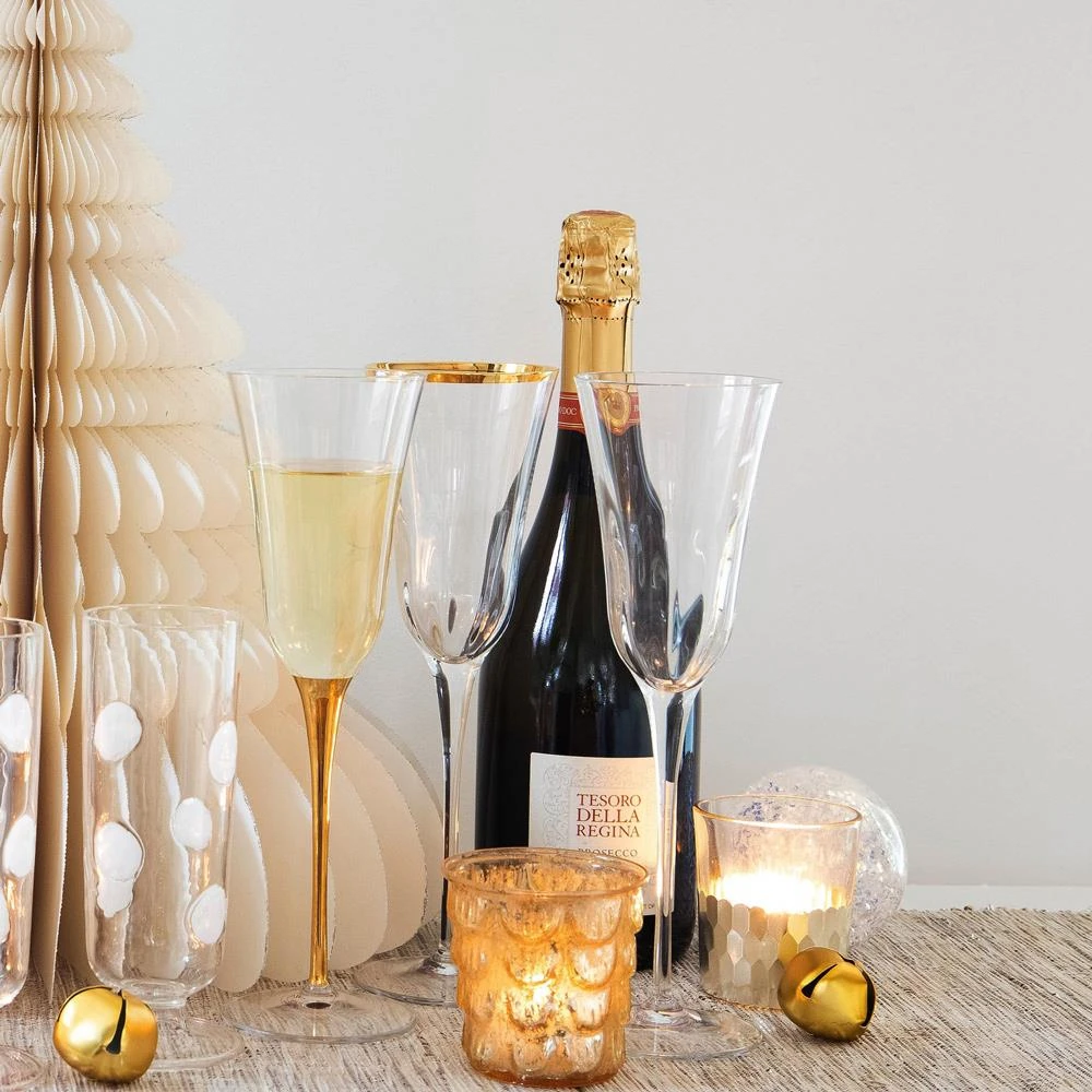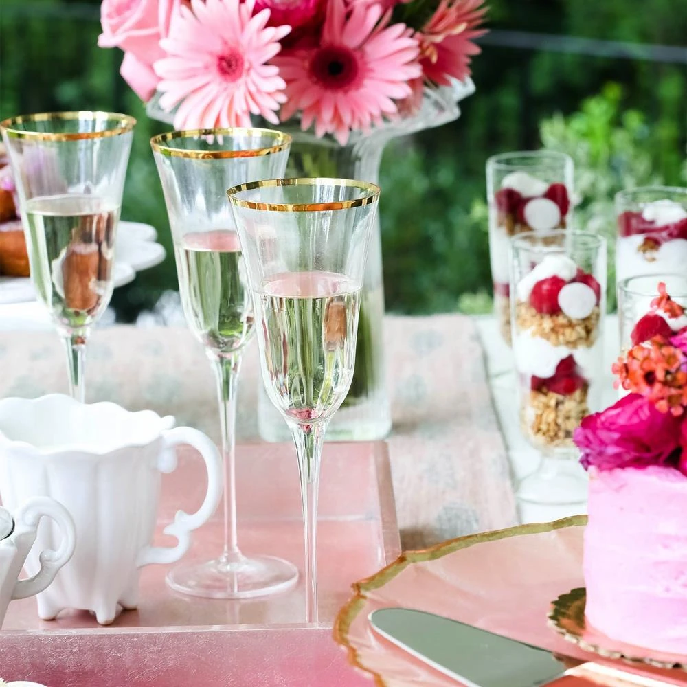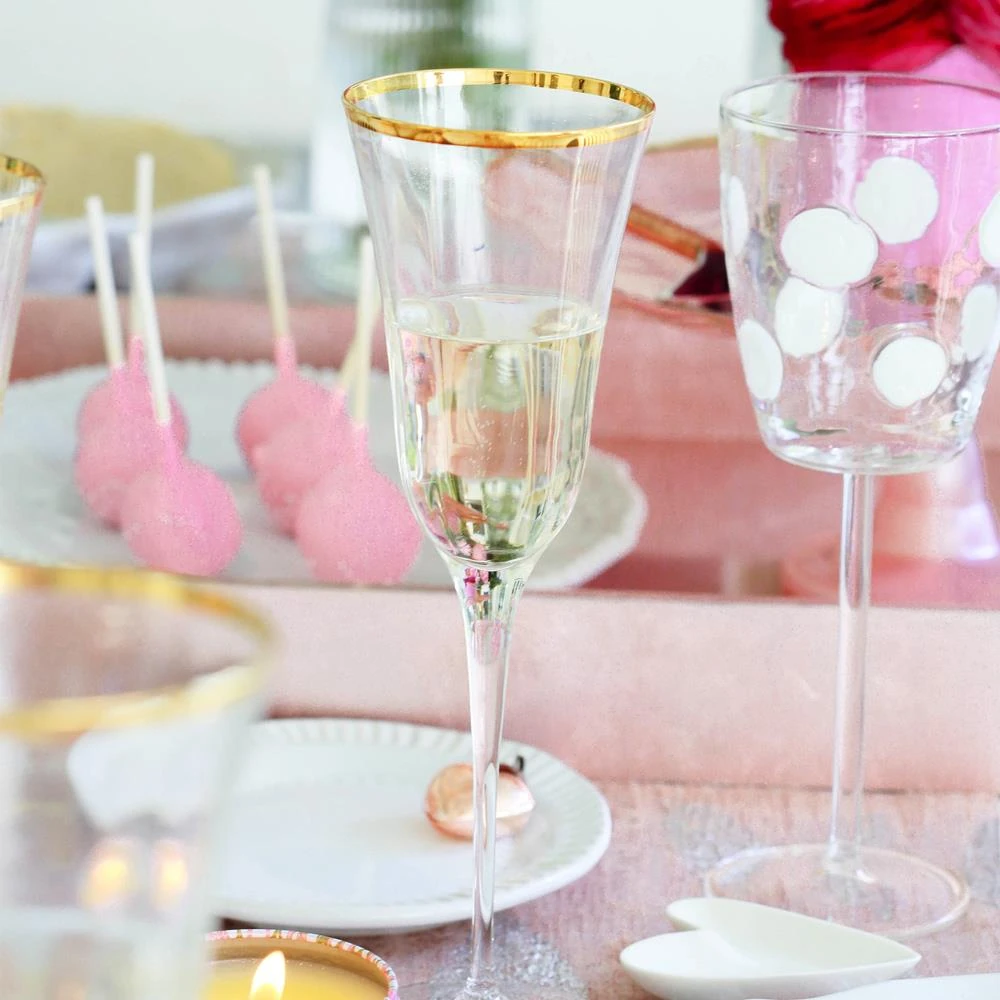 • Vince Modern Classic 11.25" Champagne Flutes with Gold Metallic Rim- Set of 6|Kathy Kuo Home