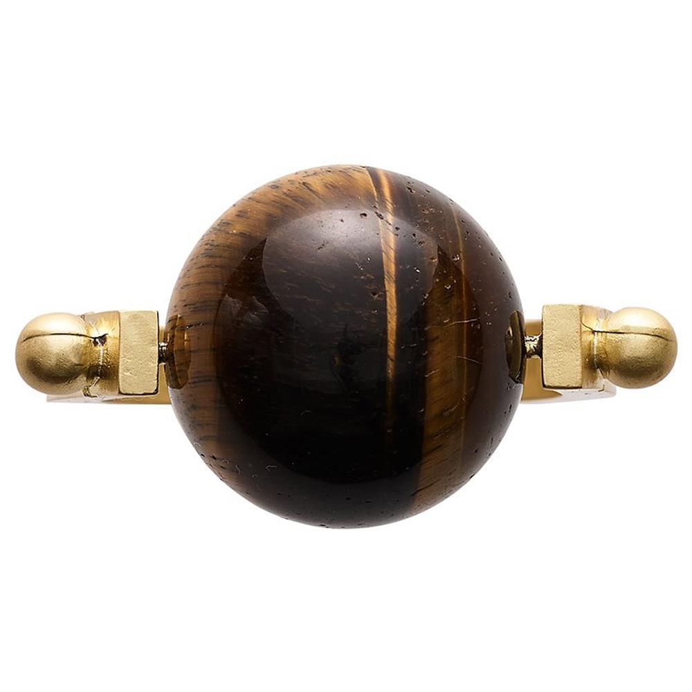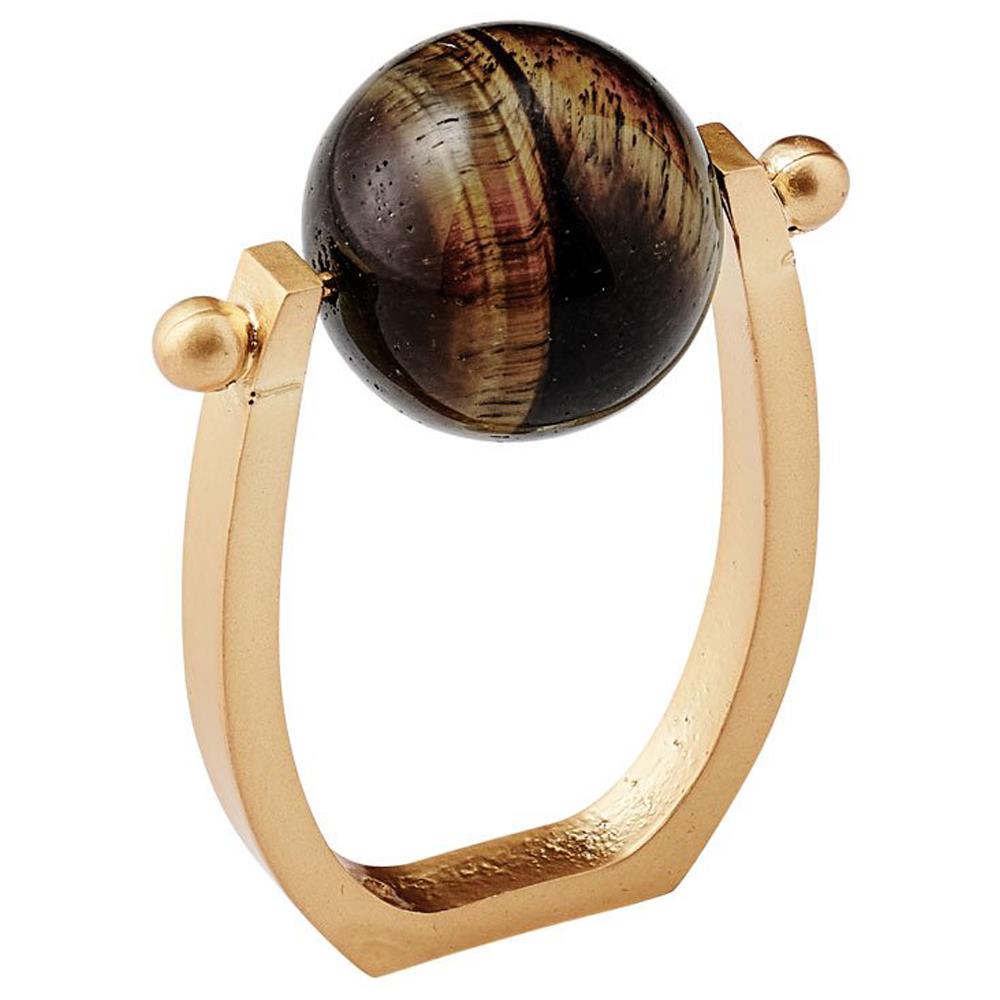 • Features authentic tiger eye stone that sits atop a cast metal orb-shaped ring