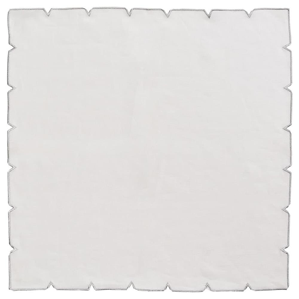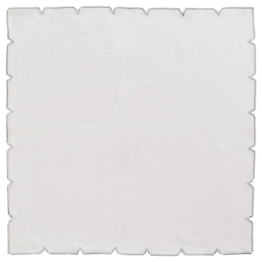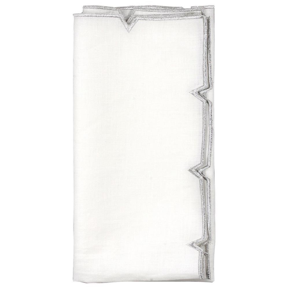 Divot Modern Silver Edge White Linen Napkin - Set of 4