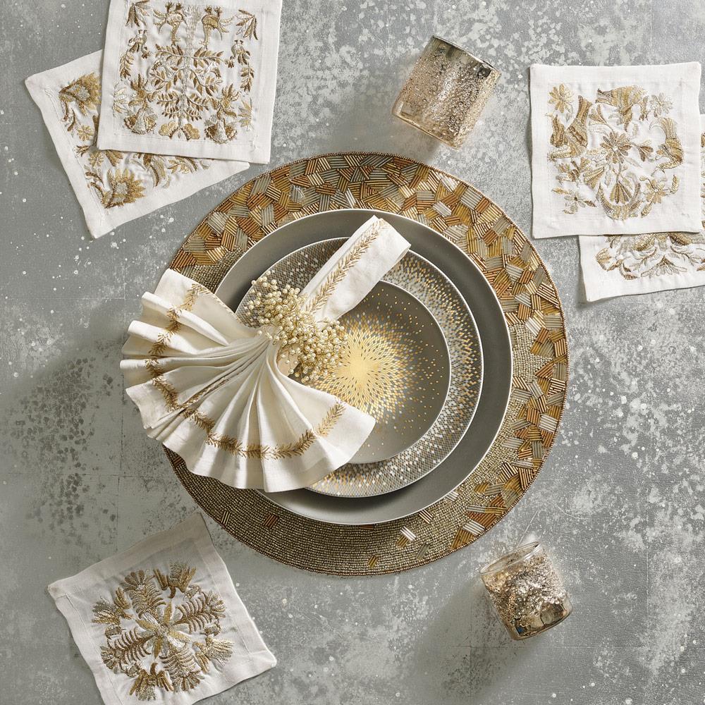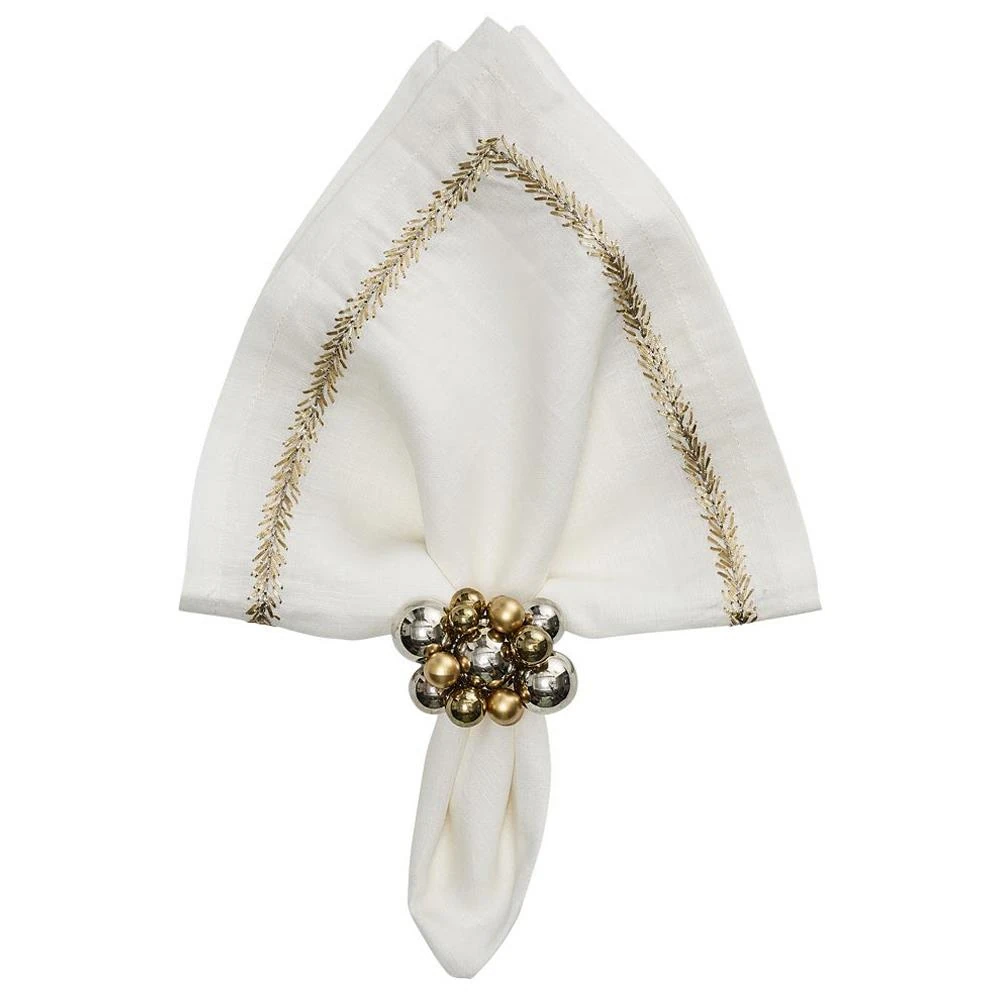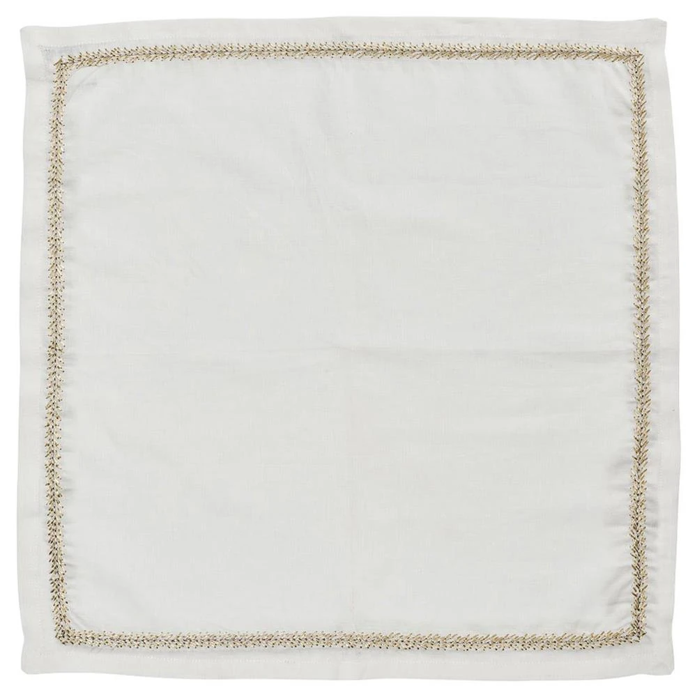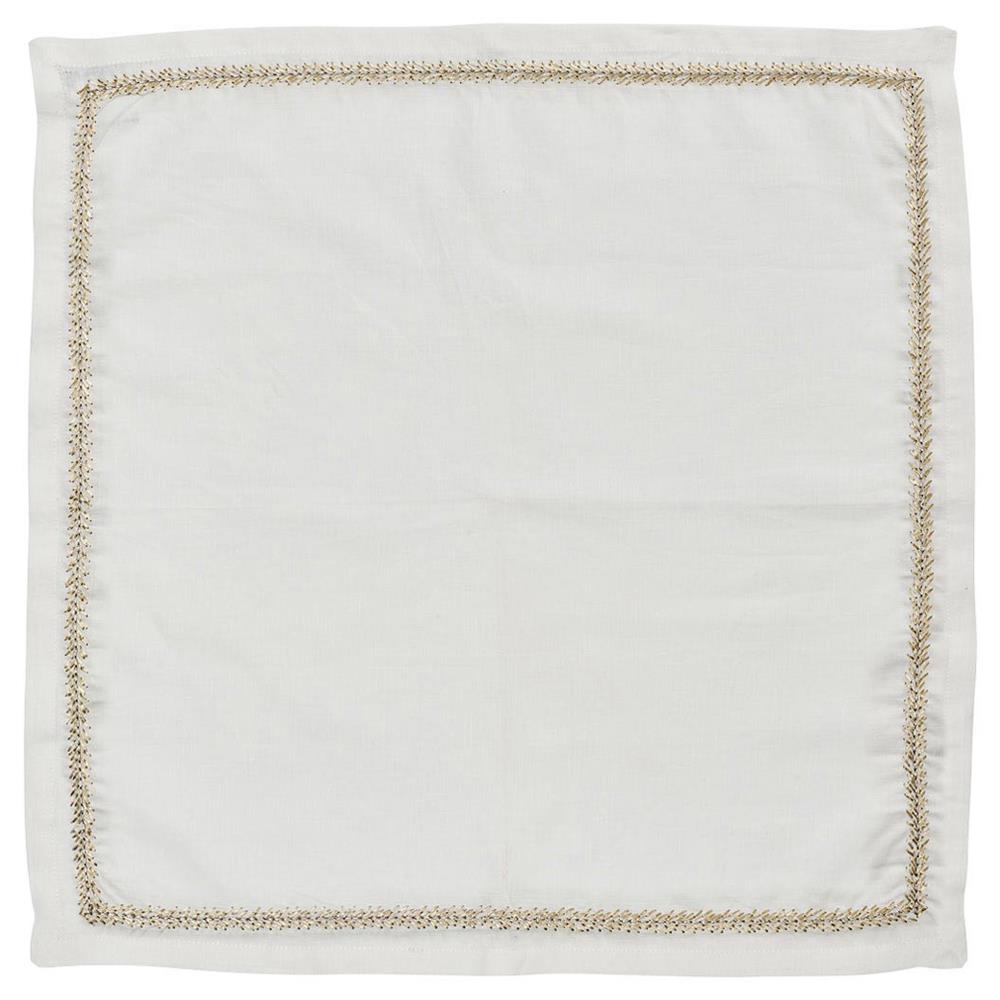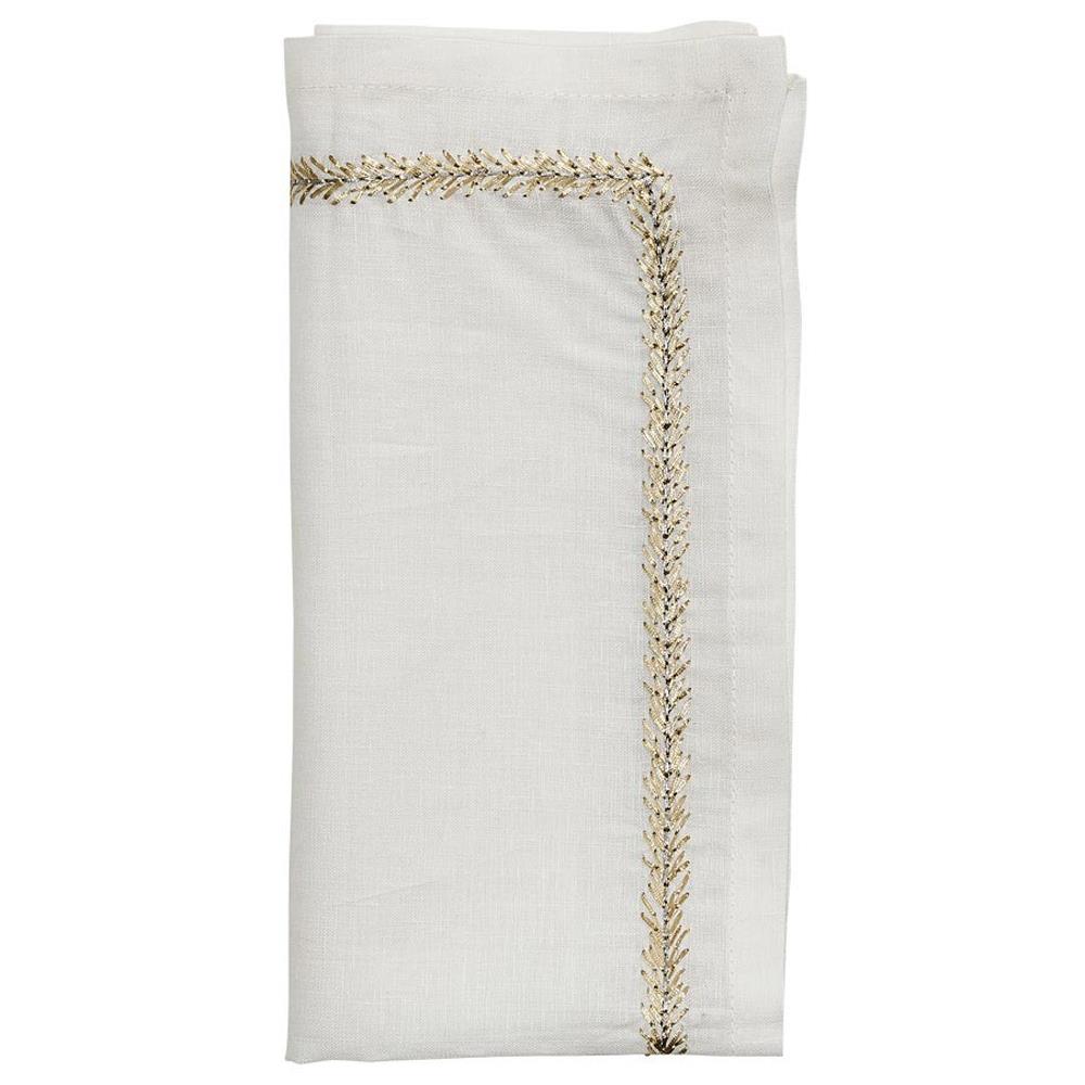 Jardin Modern Gold Embroidered White Linen Napkin - Set of 4