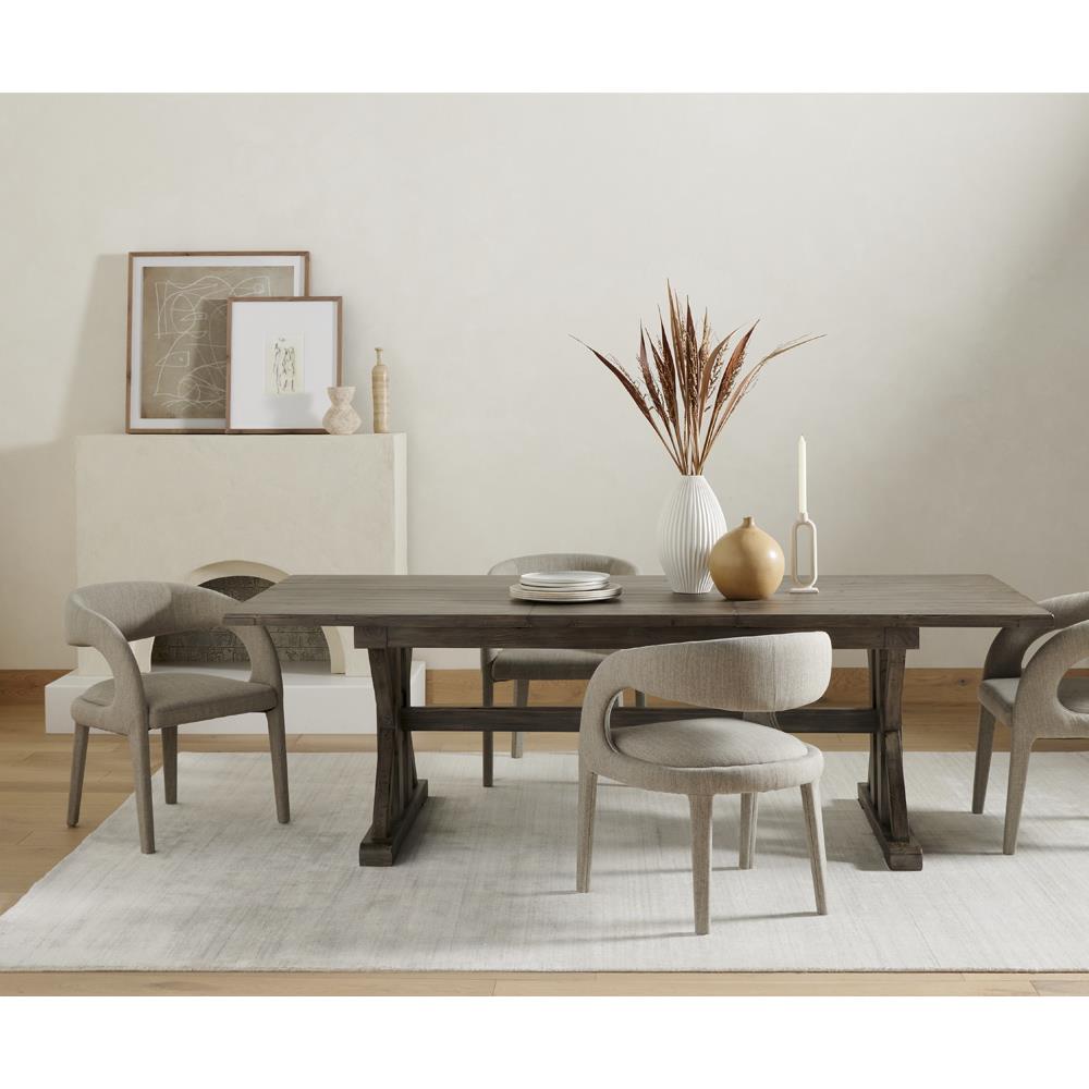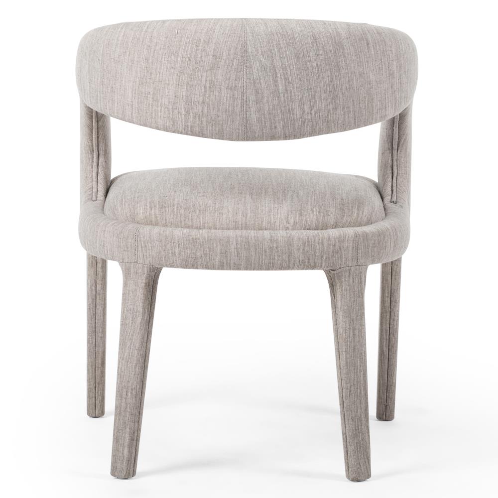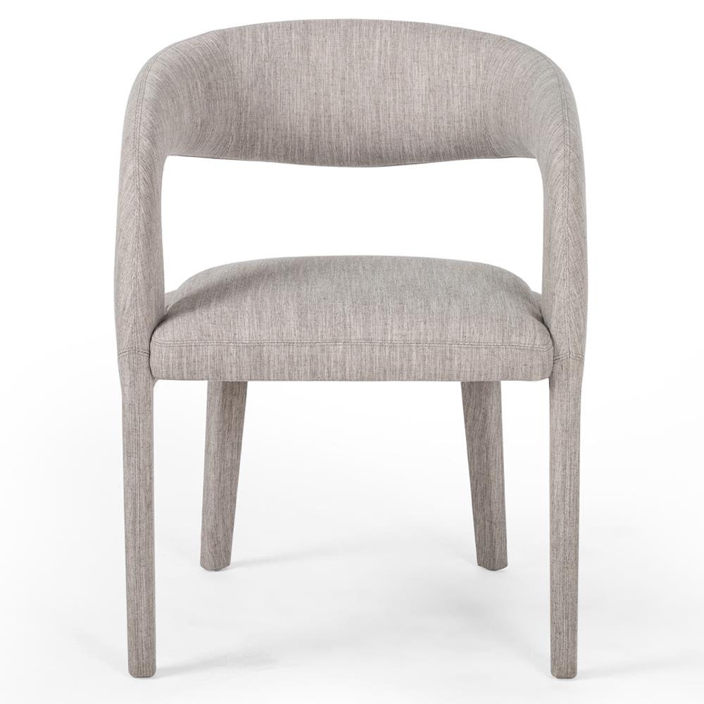 A sculptural wrap silhouette gives the Alexander dining armchair a decidedly fresh look. Flannel grey linen-blend performance upholster ... more