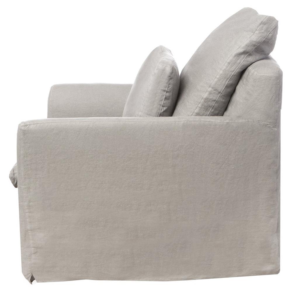• Upholstered in GǣLogan Oatmeal" fabric. Fabric content: 100% linen. Fabric is not treated with ScotchguardG?
