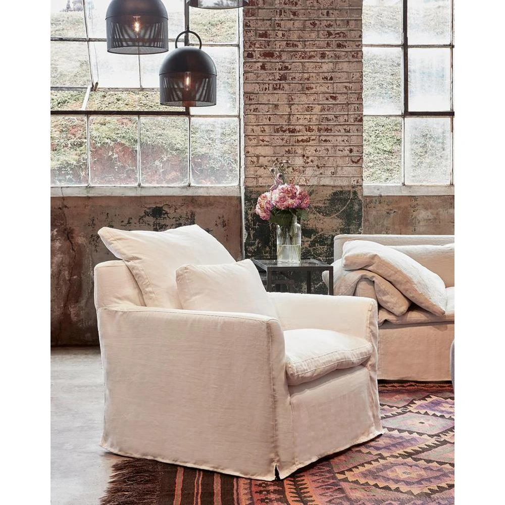 • Cisco Home Genevieve Modern Classic  Ivory Linen Slipcovered Sofa - 84 inch|Kathy Kuo Home