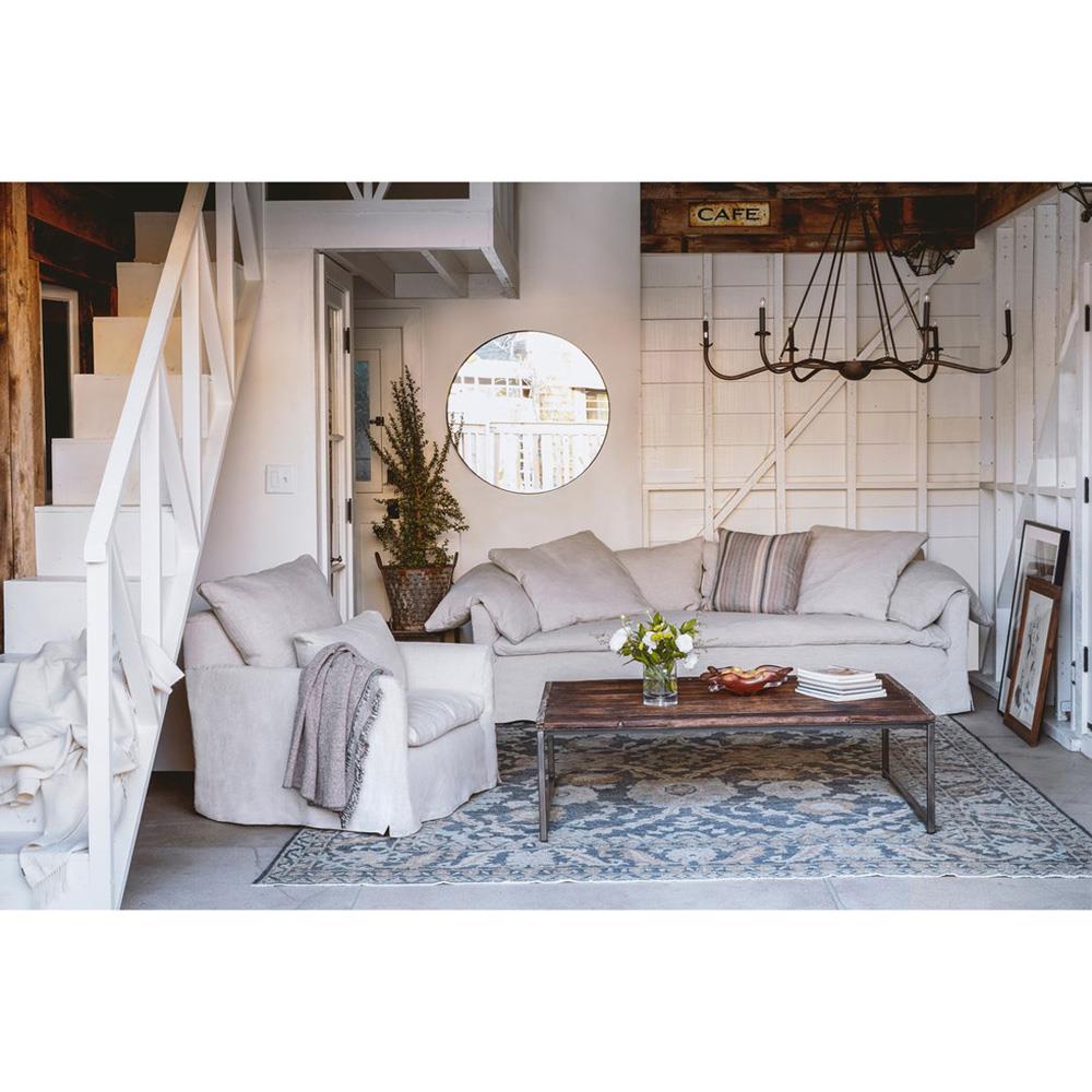 • Cisco Home Seda Coastal Denim White Slipcovered Armless Loveseat|Kathy Kuo Home