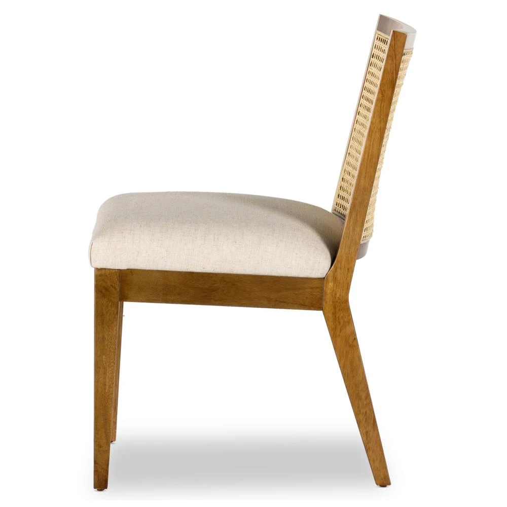 • Annette Modern Classic Dark Brown Cane Wood Frame White Performance Dining Side Chair|Kathy Kuo Home