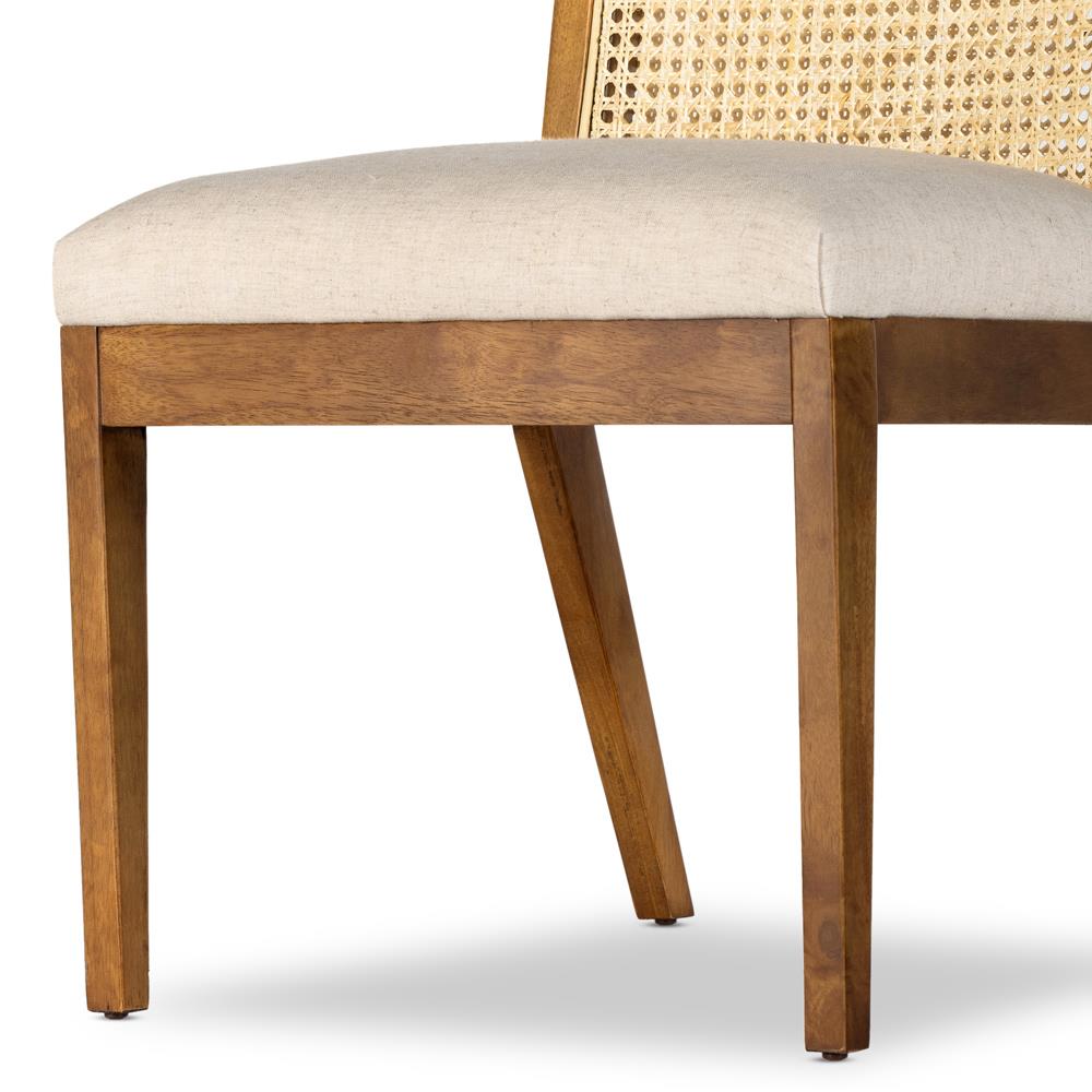 Annette Modern Classic Brown Cane Wood Frame White Performance Dining Side Chair