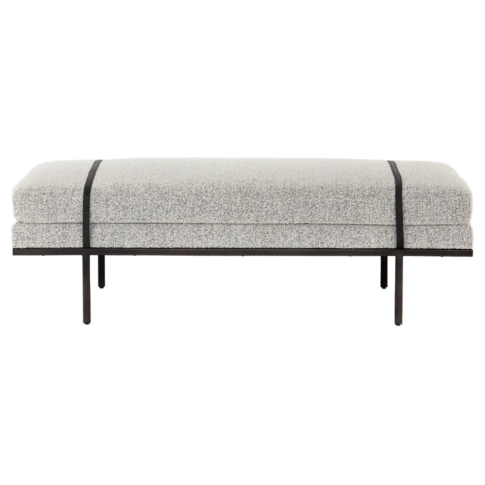 Ronan Modern Classic Grey Performance Upholstered Seat Black Iron Frame Bench
