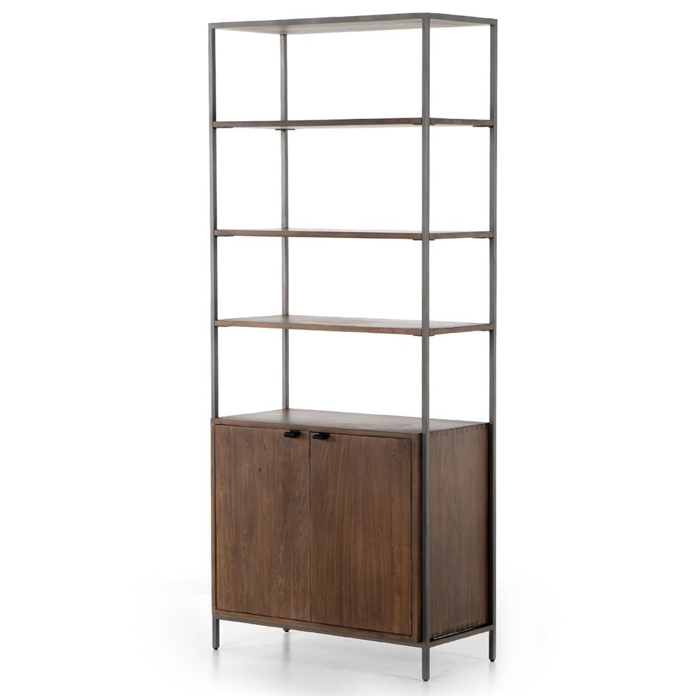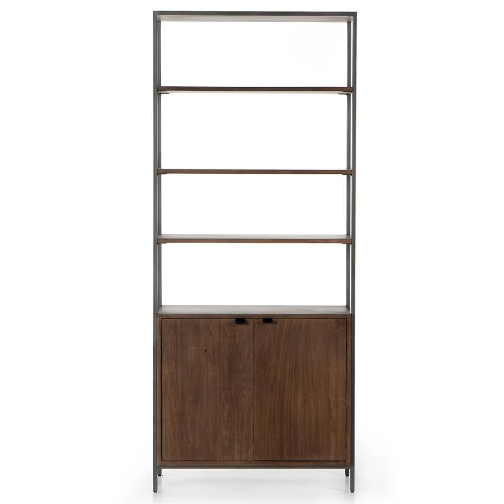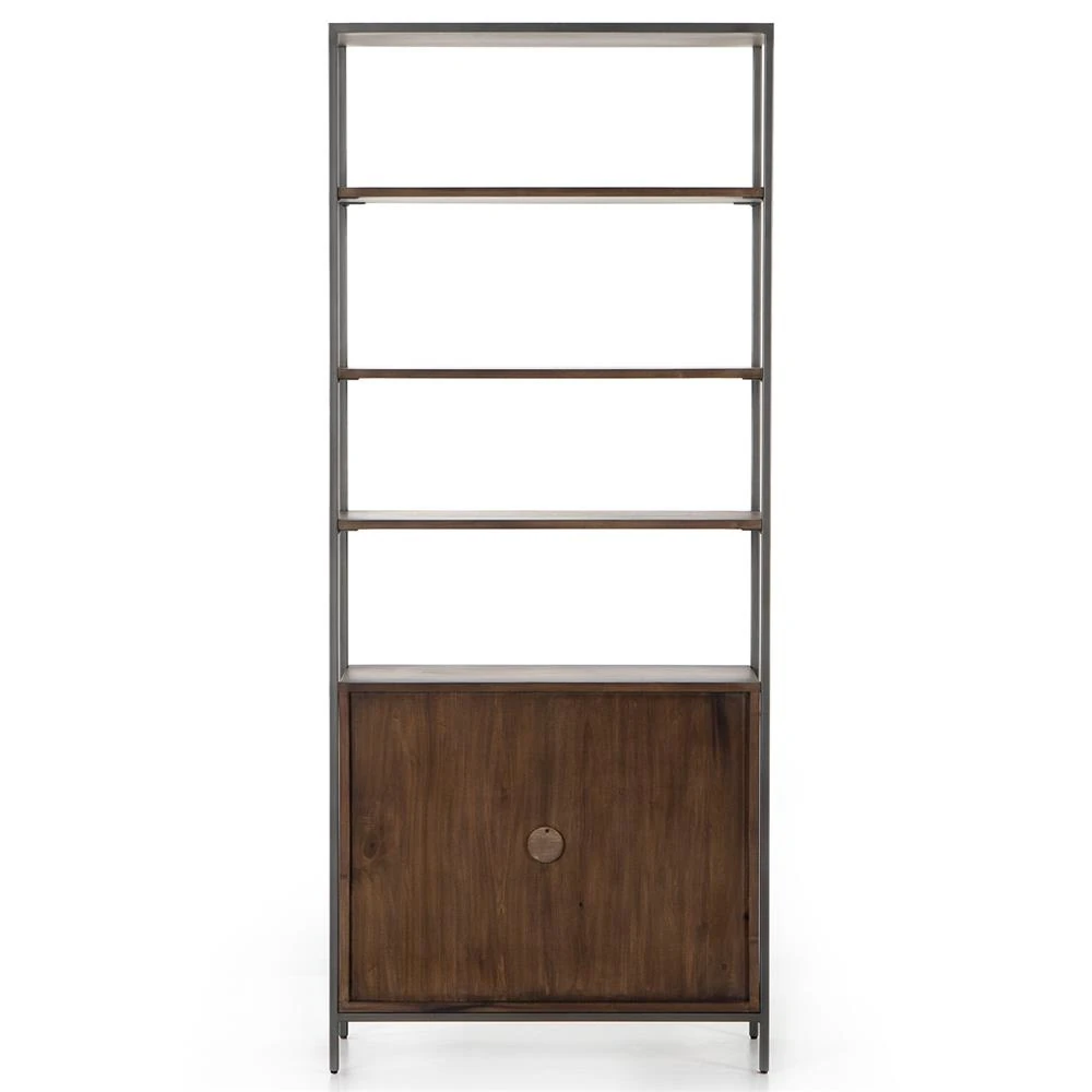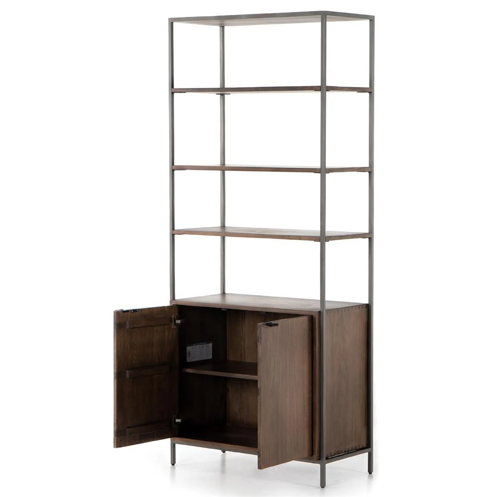 Theodore Industrial Loft Brown Wood Grey Iron Frame Open Back Display Bookcase