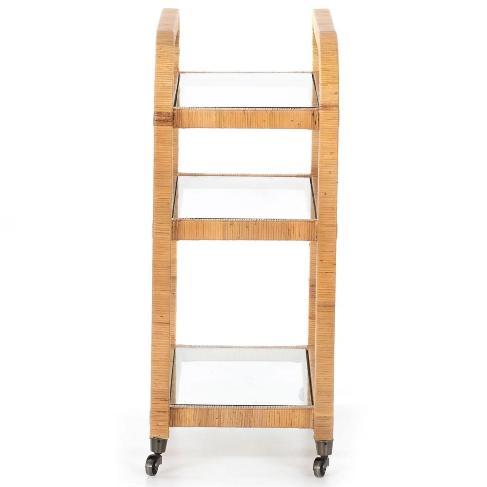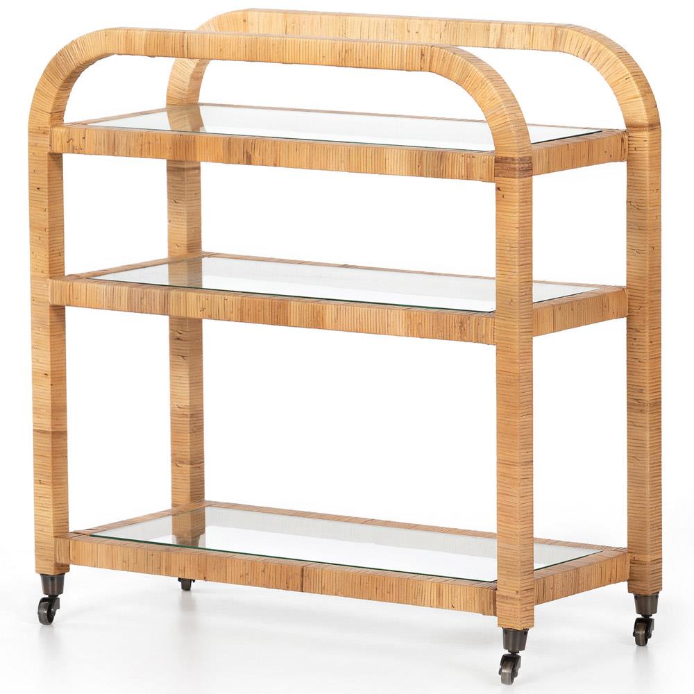 Andi Coastal Beach Natural Brown Rattan Bar Cart