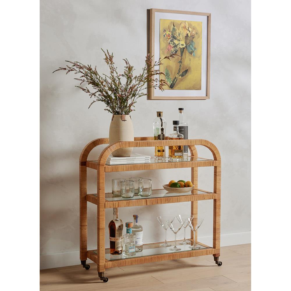 • Jesse Coastal Beach Natural Woven Abaca Bar Cart|Kathy Kuo Home