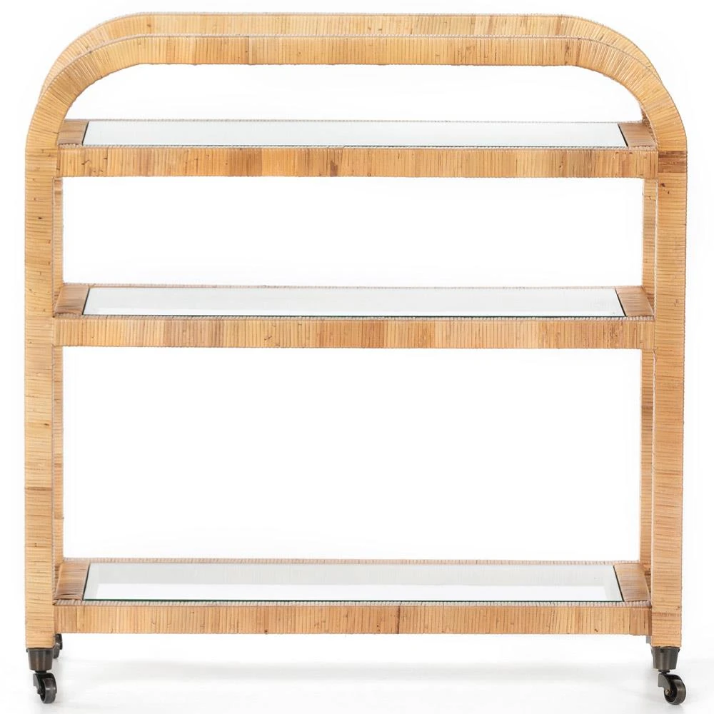 • Andi Coastal Beach Natural Brown Rattan Bar Cart|Kathy Kuo Home