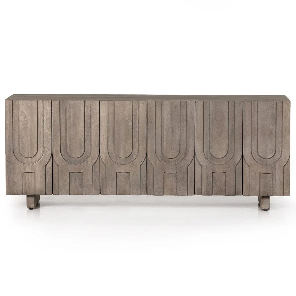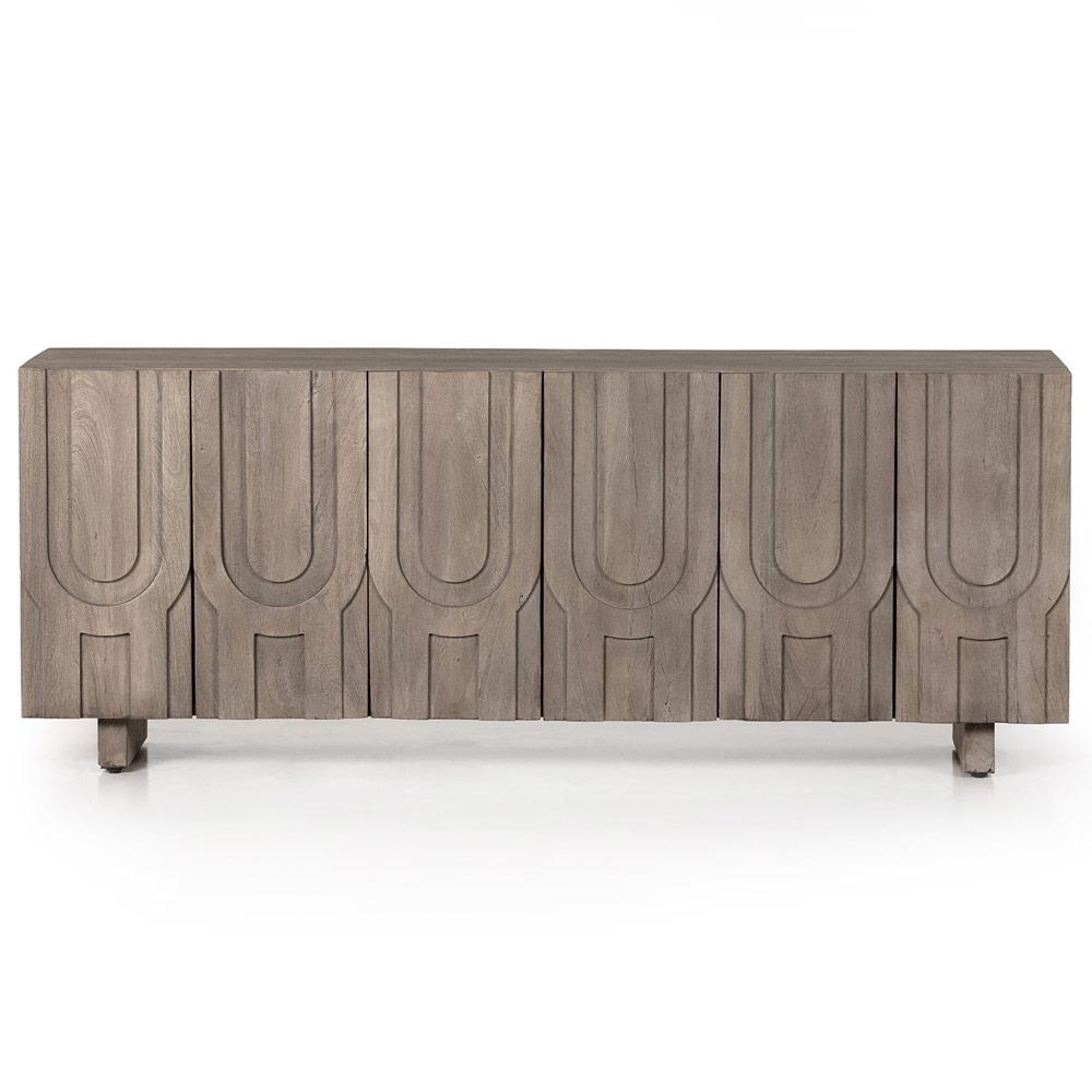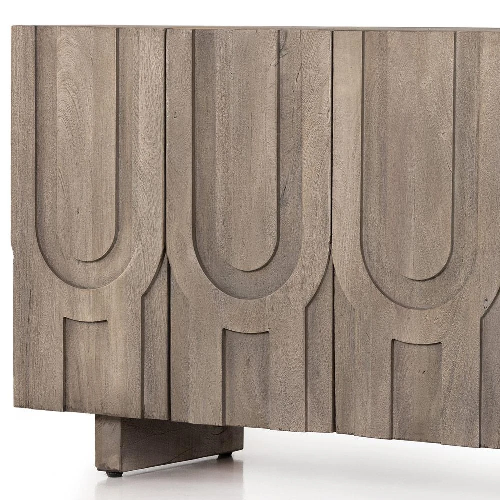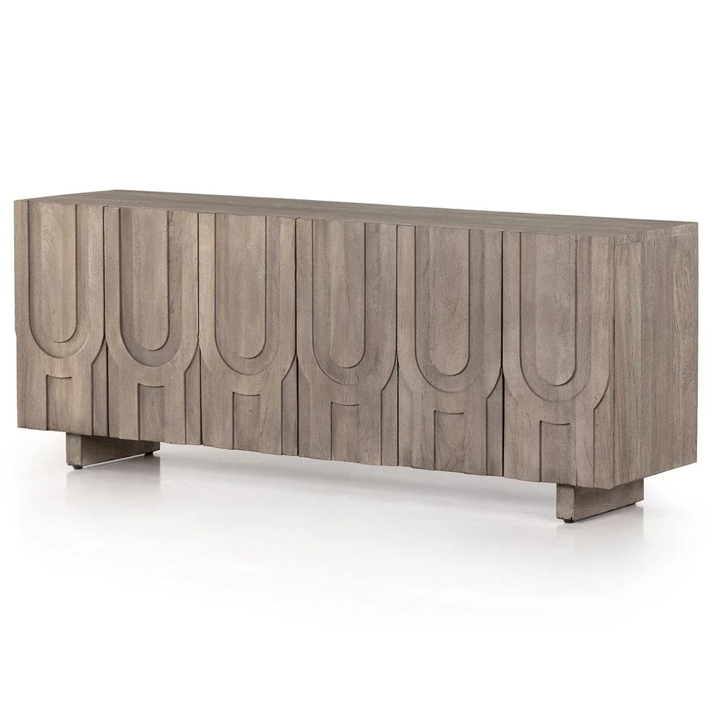 Celia Modern Classic Aged Grey Carved Wood Media Console
