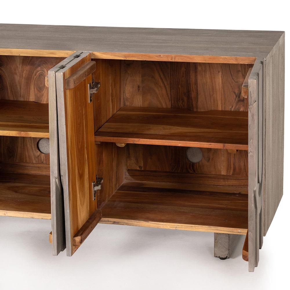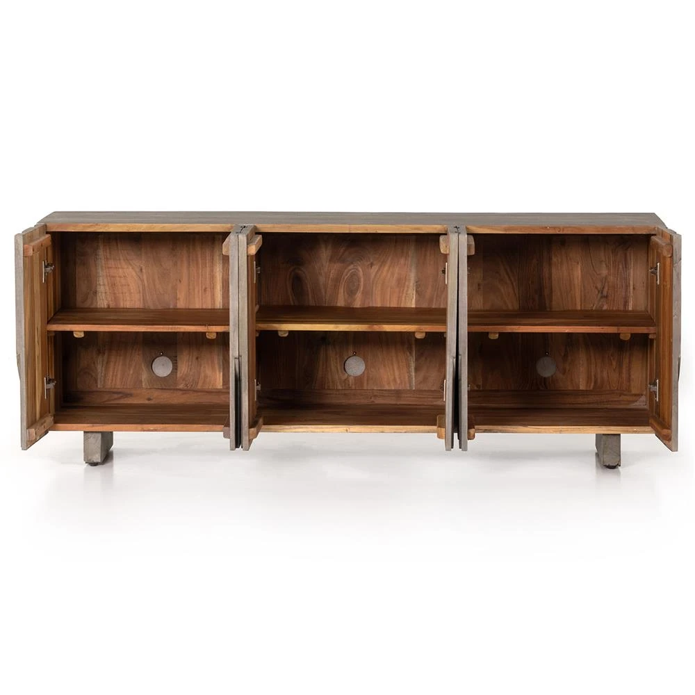 Cayson Coastal Beach Grey Acacia Wood Textured Media Cabinet - 74"