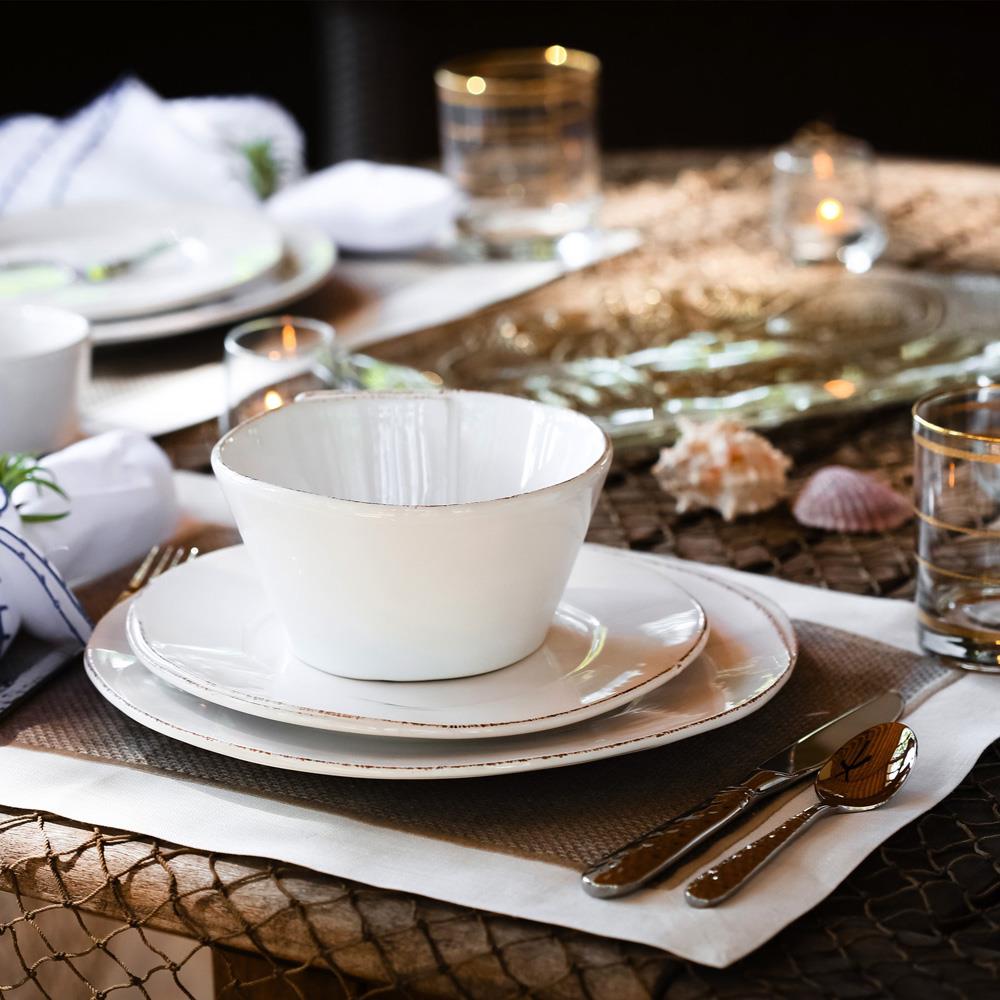 • Incanto Stone Lace Modern White Stoneware 4 Piece Place Setting|Kathy Kuo Home