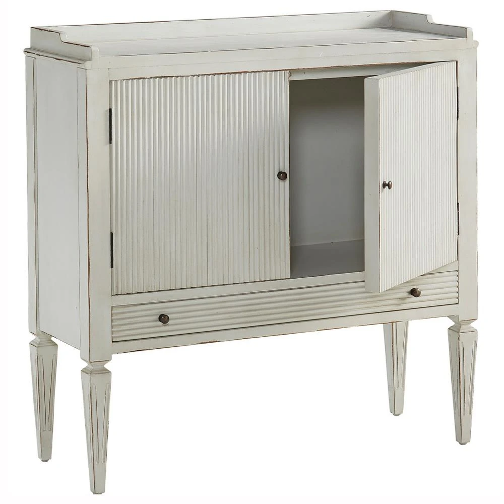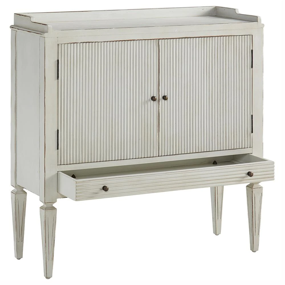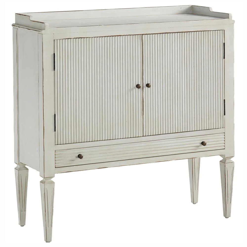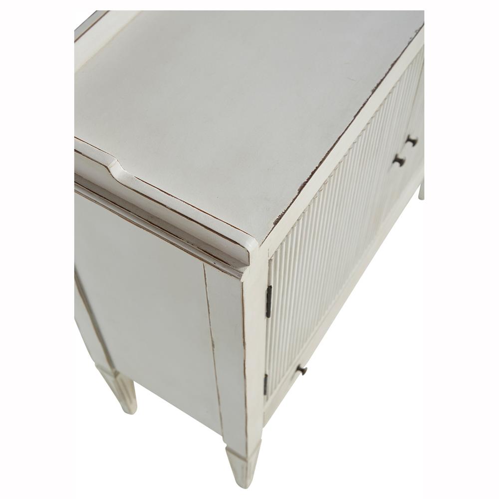 • Features finely-wrought tapered legs, unique ribbed detailing, and lightly-distressed edges