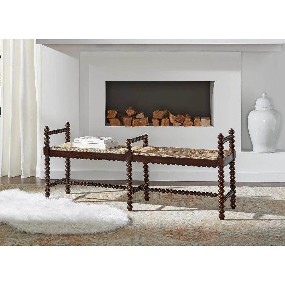 • Jacob Coastal Beach Beige Cotton Rope Brown Mahogany Wood Frame Bench|Kathy Kuo Home