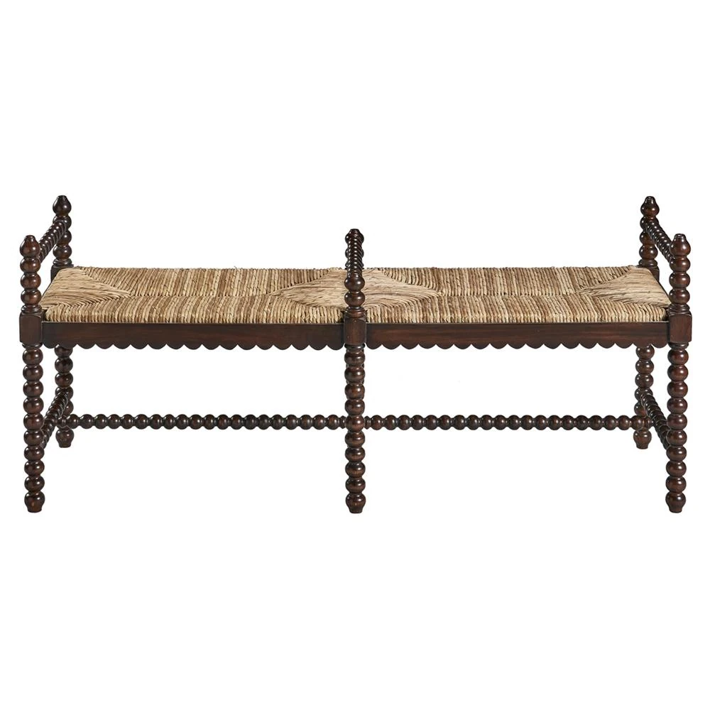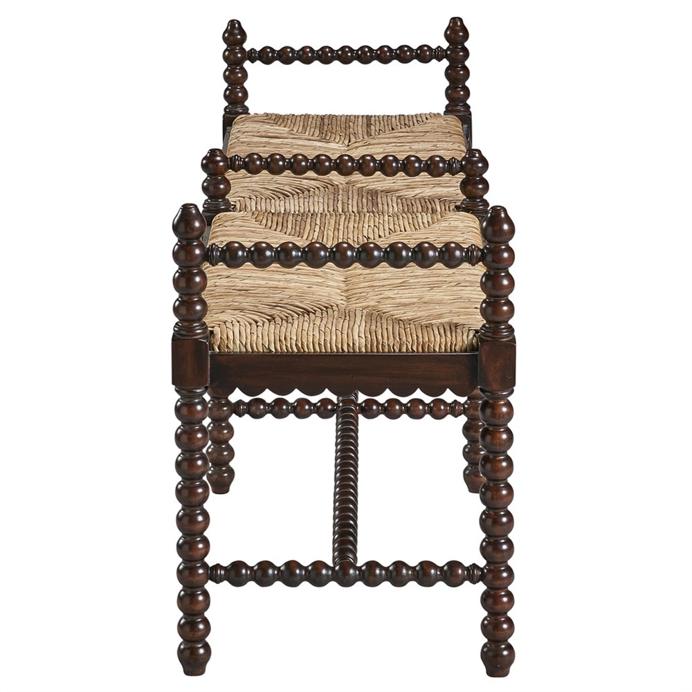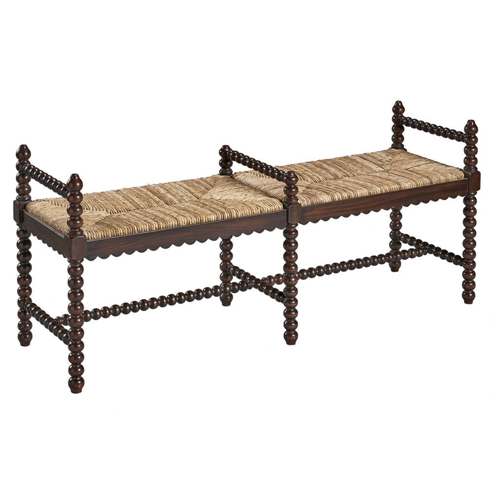 • Features hand-tied seat and divider, scalloped apron, and bobbin turnings on the arms, legs and stretchers