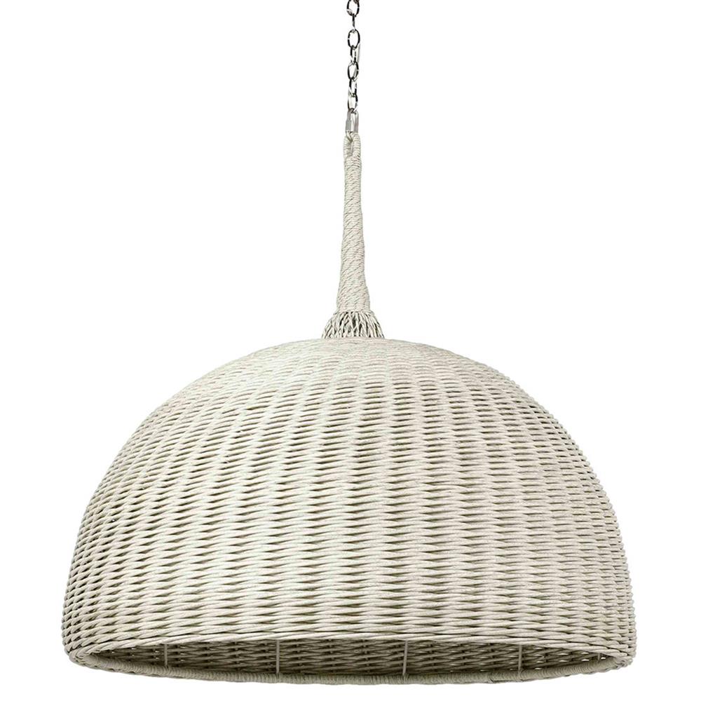 Palecek Wisteria Coastal Beach White Rattan Dome Shade Outdoor Chandelier - 30"
