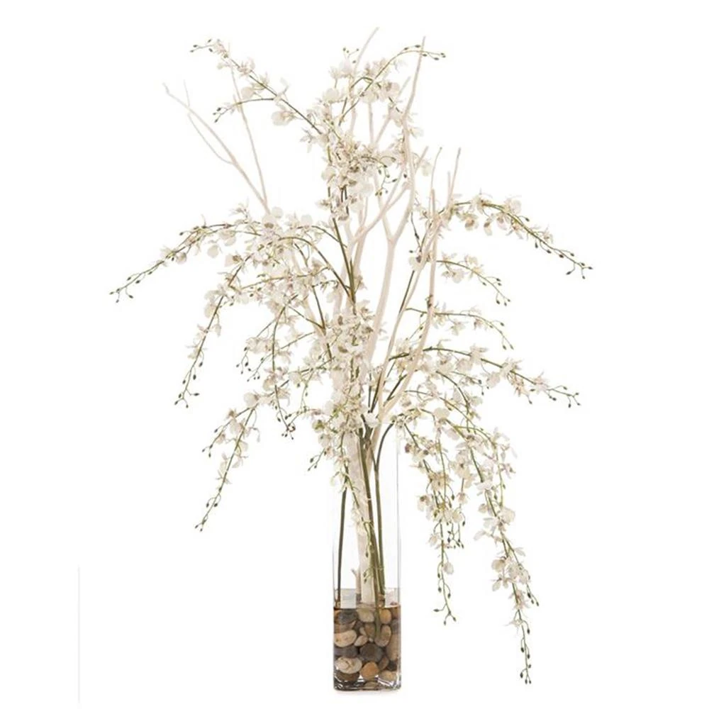 John-Richard Modern Classic Natural White Mitsumata Orchids In Cube Vase