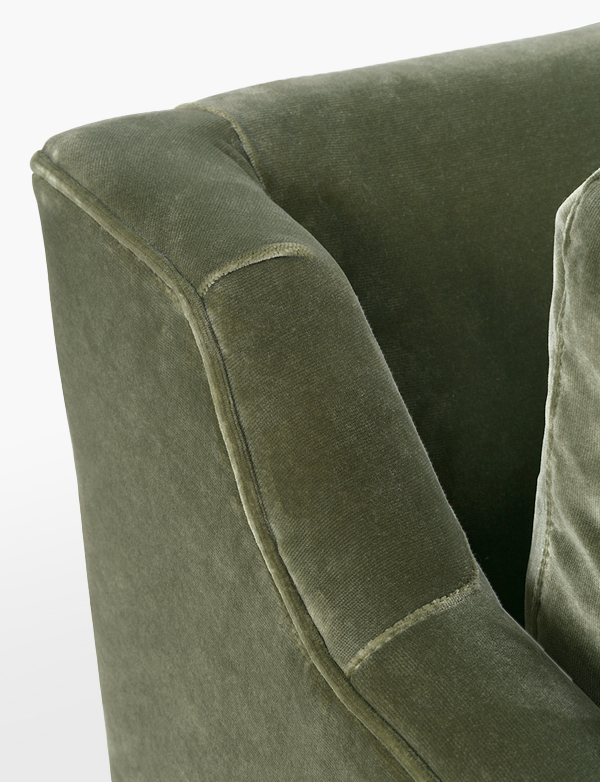 I ordered this beautiful sofa before Thanksgiving, and it arrived right before ValentineG??s Day and itG??s just lovely. The quality. The seaming, the color of the velvet, the soft curves are elegant. sublime. I love the casters on the front of the sofa so I can reposition it easily if I need to move it closer to the fireplace on a cool, moody day. I will definitely order from Kathy Kuo Home in the future.