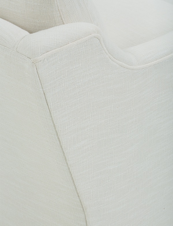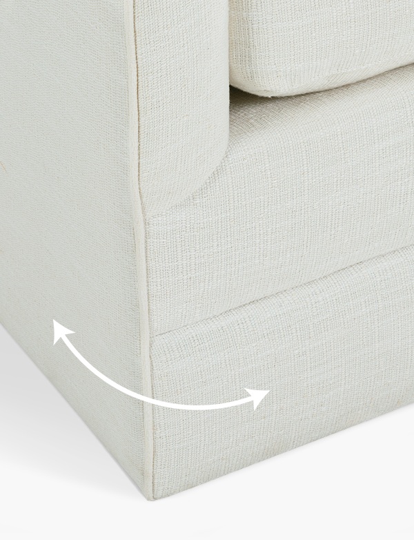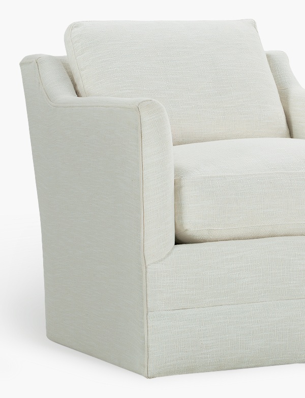 Classically inspired with modern appeal, the Madeline swivel chair brings a stylish touch to any modern or traditional home. Tailored upholstery extends to the floor on this timeless, versatile piece. Soft yet supportive, the seat cushion is designed for supreme comfort, with a foam core surrounded by a blend of fiber, down, and feather fill. Choose from a variety of upholstery options, including linen, velvet, and performance fabrics.